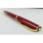A MONTBLANC ball point pen in case with booklet stored beneath. In good, used condition with intact gilt fittings