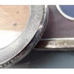 Two attractive silver hallmarked photo frames, square one (Chester 1900) 11x11xm approx, and the circular one by WALKER & HALL (Birmingham 1915) 10cm dia approx