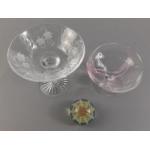 A beautiful crystal glass compote (15cm tall), a CAITHNESS glass bowl (12cm tall), and a STRATHEARN paperweight