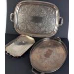 Three good quality substantial EP trays, largest 65cm long at the handles.