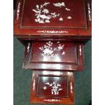EXQUISITE - An Oriental ROSEWOOD inlaid nest of four tables, largest H66 x W50 x D35cm