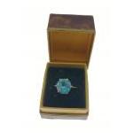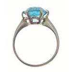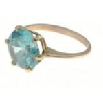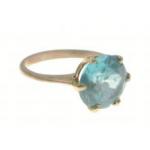 An unmarked quality yellow metal ring with large blue aquamarine style stone - stone dimensions 8mm diameter approx, ring size I/J (for info weight 2.25g gross approx)