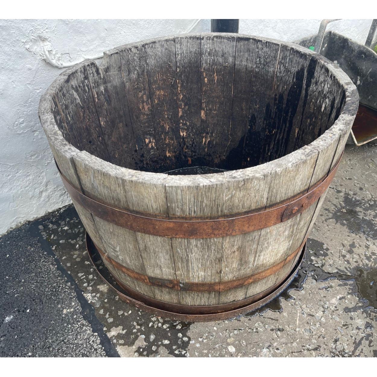 A large half cut original WHISKY barrel planter - would make an ideal planter - dimensions 25" diameter x 17" height approx