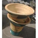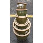 A set of ten graduated plant pot holders in glazed terracotta, the tallest standing approx 23cm high