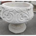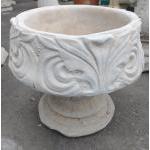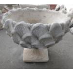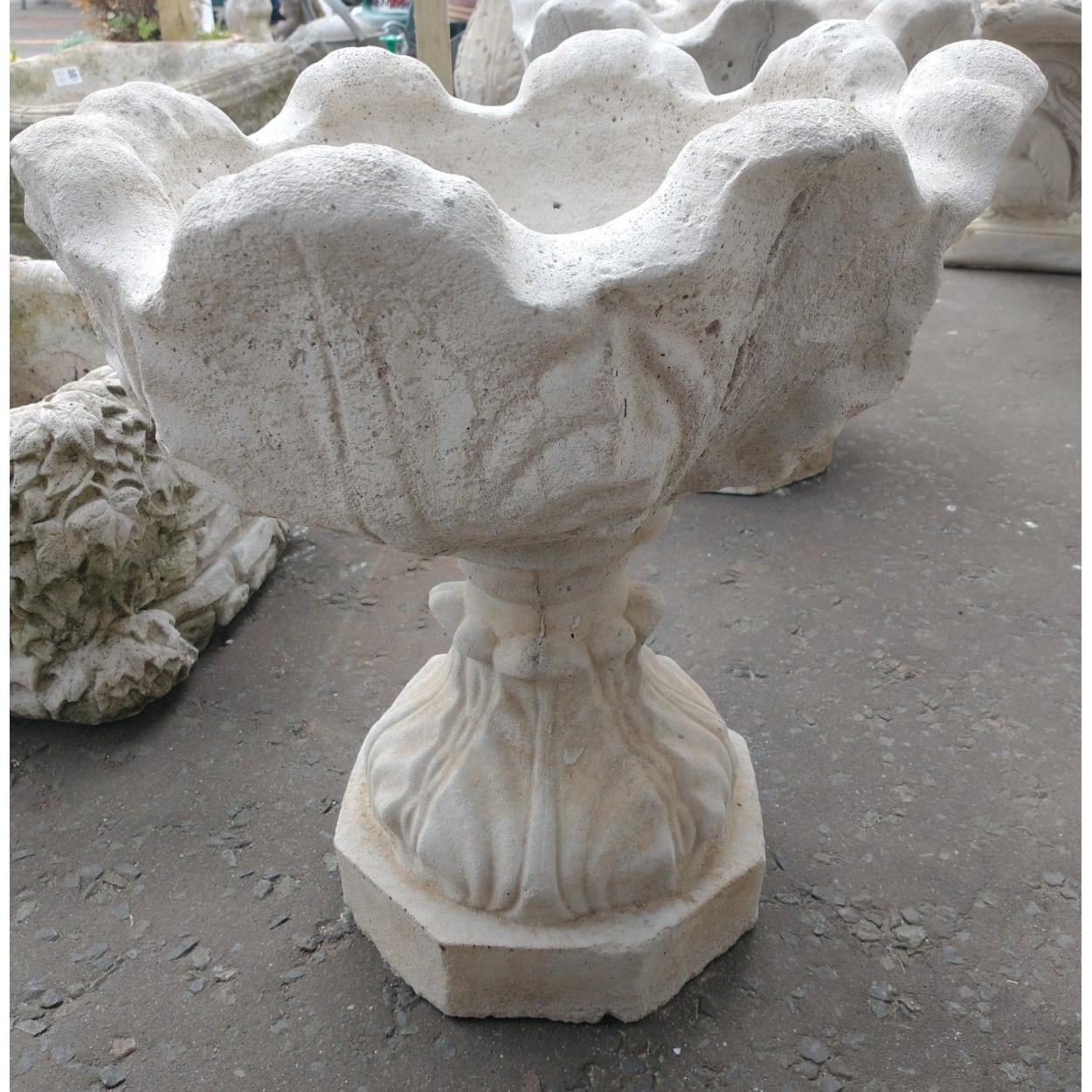 A stonework cabbage leaf style planter on plinth, in 2 pieces, 46cmW x 46cmH