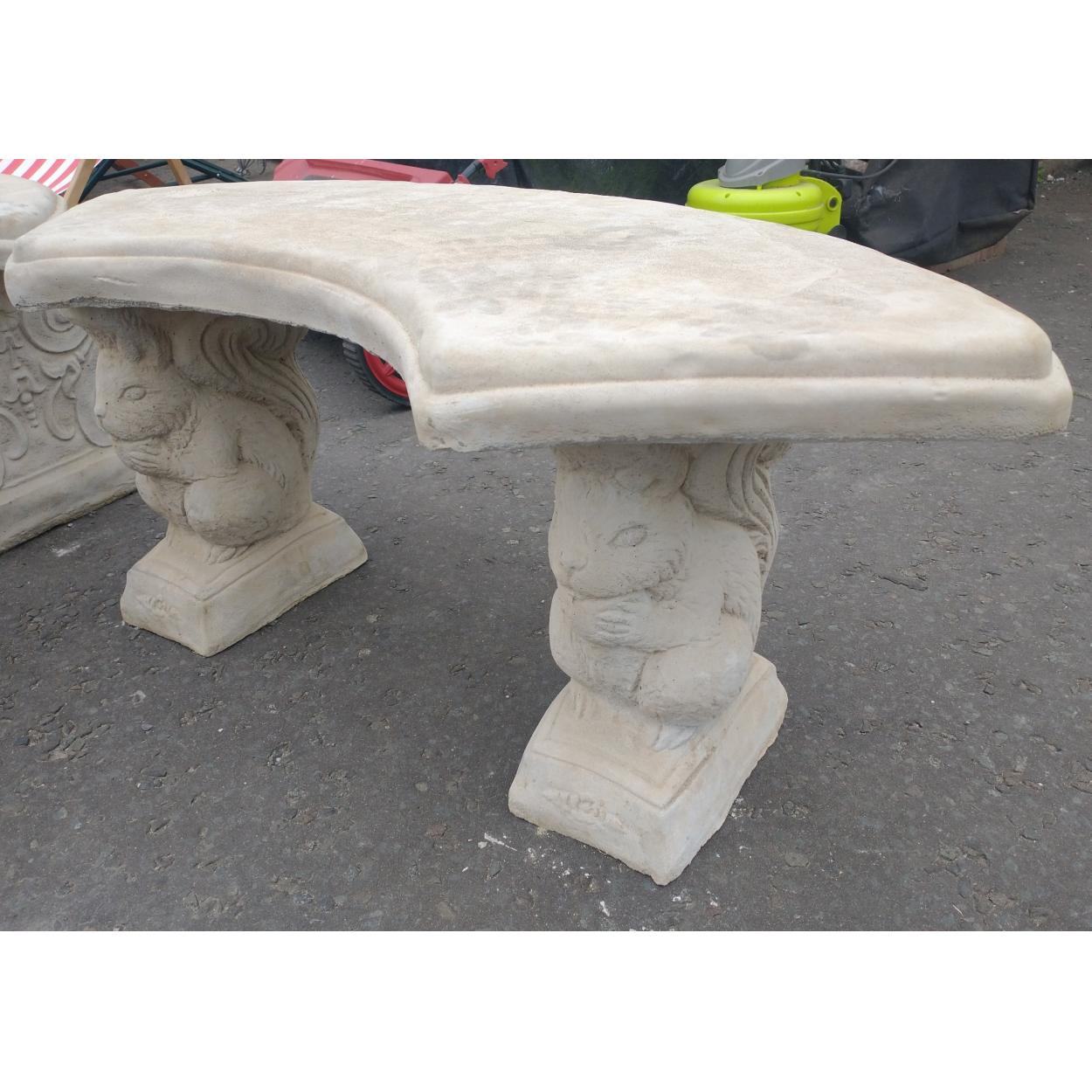 A stonework garden bench on squirrel plinths and curved top 104W x 46D x42H