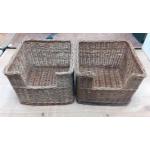 A pair of wicker storage baskets 35x38x27cm. Excellent for kitchen storage or a cat basket