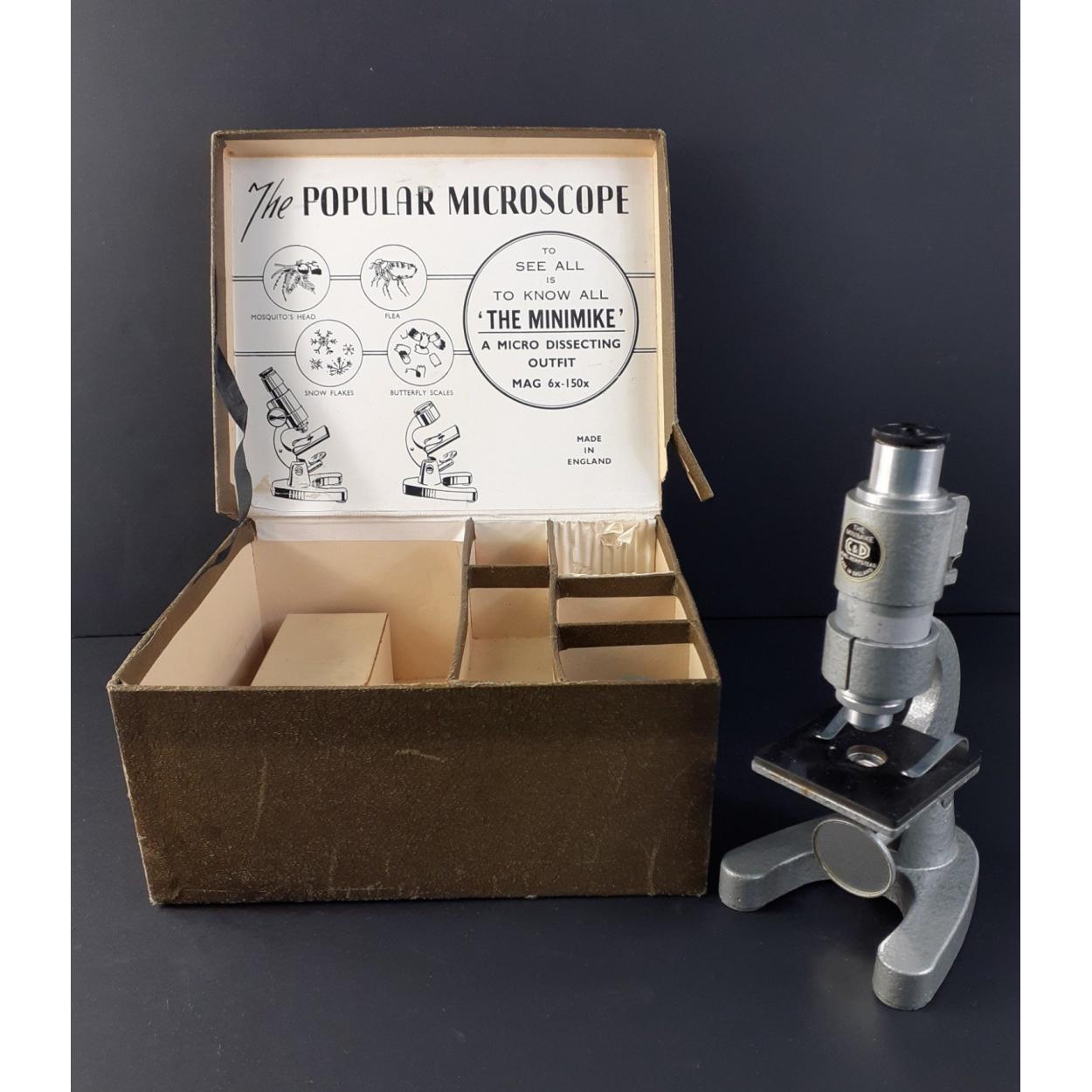 A THE MINIMIKE desktop older Microscope in box.