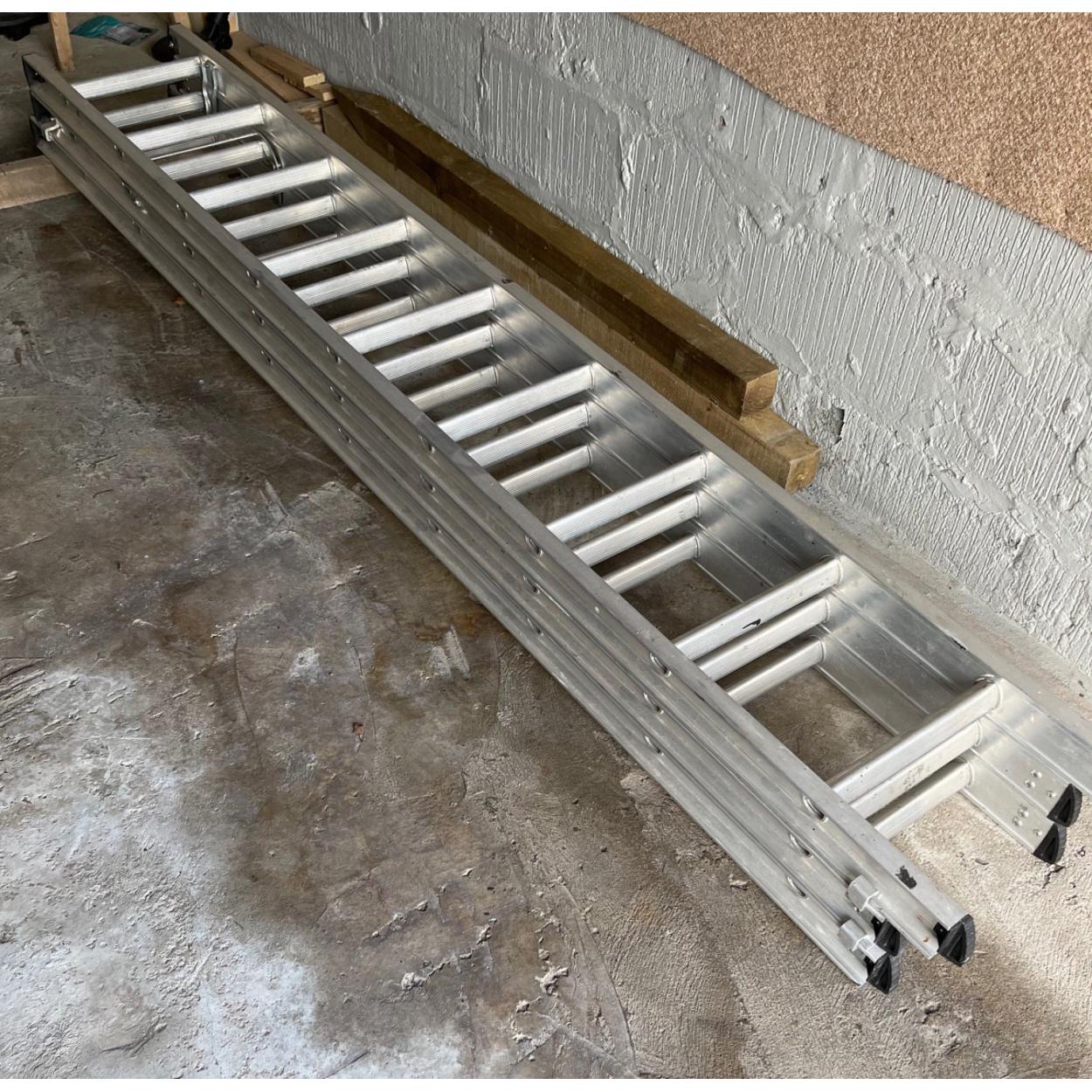 A three tier extending ladder set with 9 rungs per on each set, 22-25ft when extended approx - as new condition - similar set new £250!