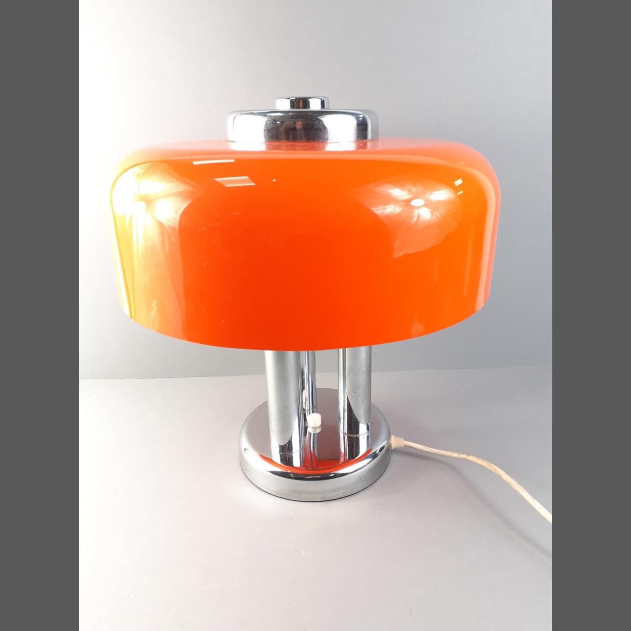 A beautiful RETRO table lamp in vibrant volcanic orange standing 40cm tall and 38cm shade