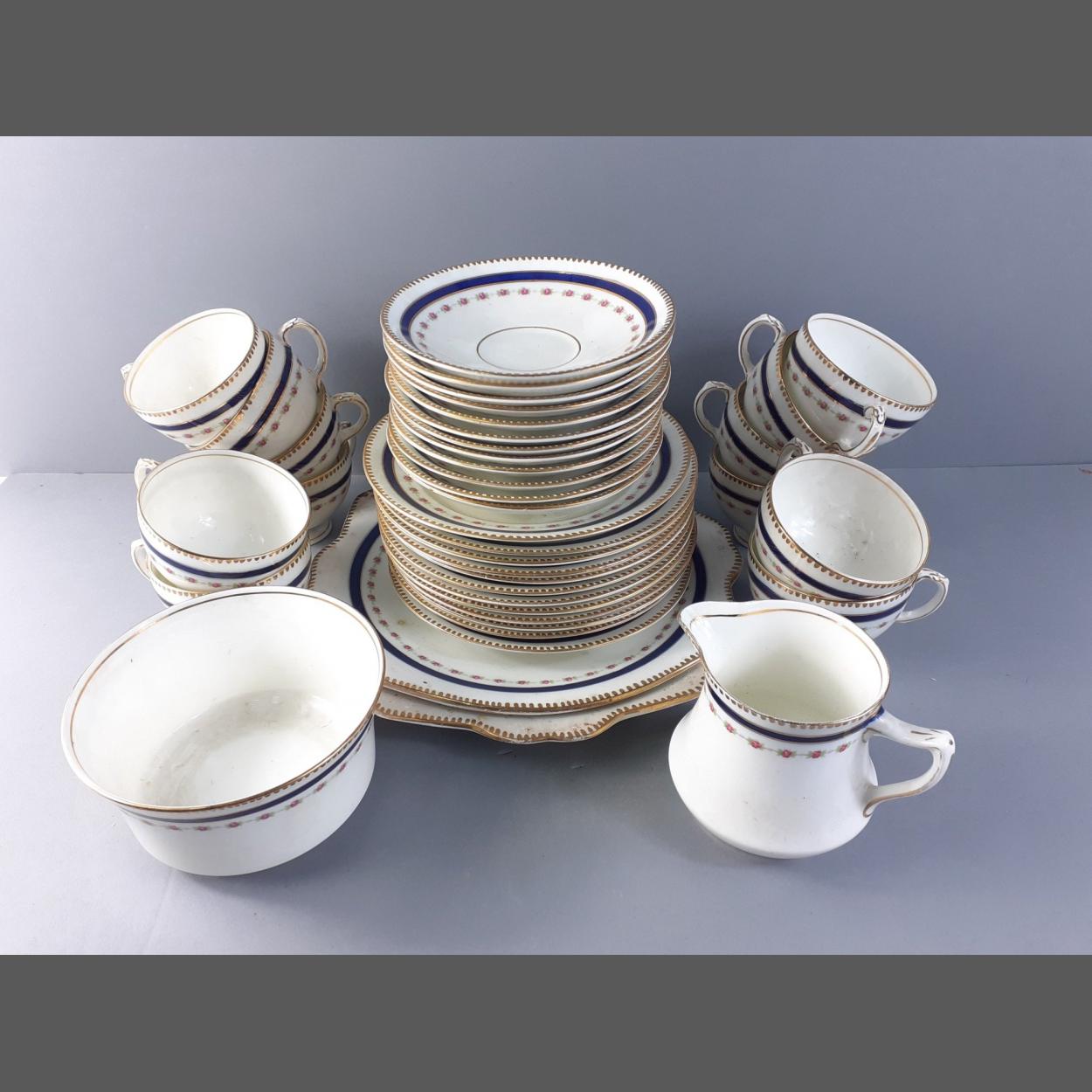 A DIAMOND CHINA tea service for 12 comprising 12 each of teacups, saucers, side plates, 2 cake plates, 1 milk jug and 1 sugar bowl. In good condition