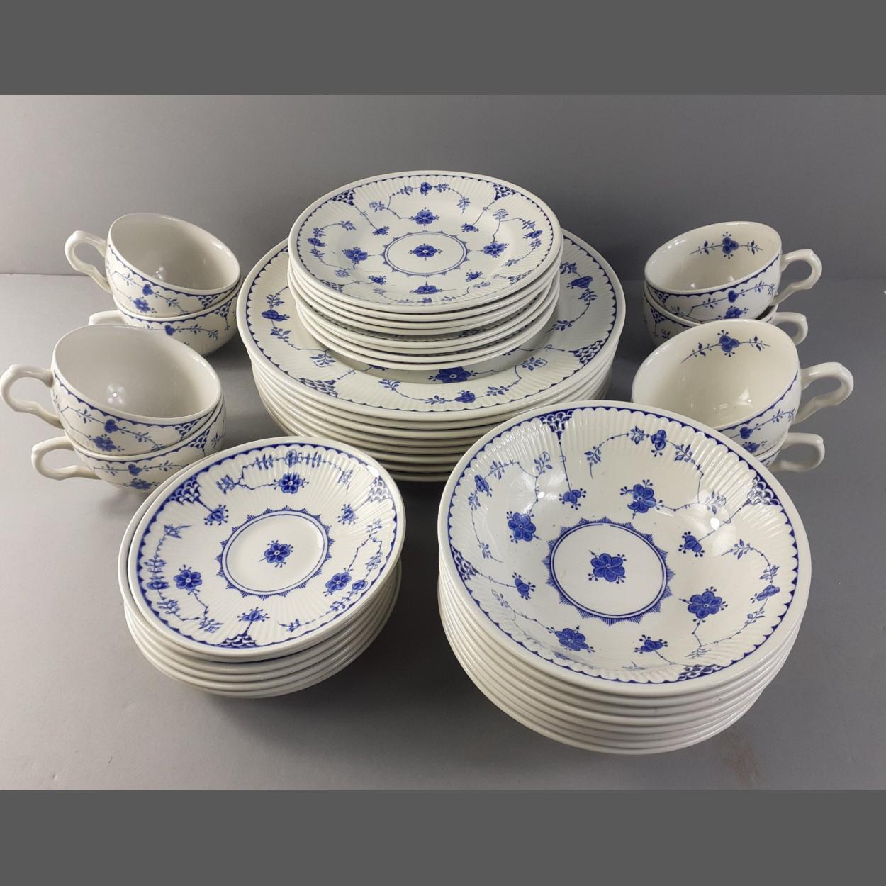 A FURNIVAL'S DENMARK 8-place floral dinner service complete with approx. 26cm diameter dinner plates, side plates, bowls, saucers and cups. In good condition.