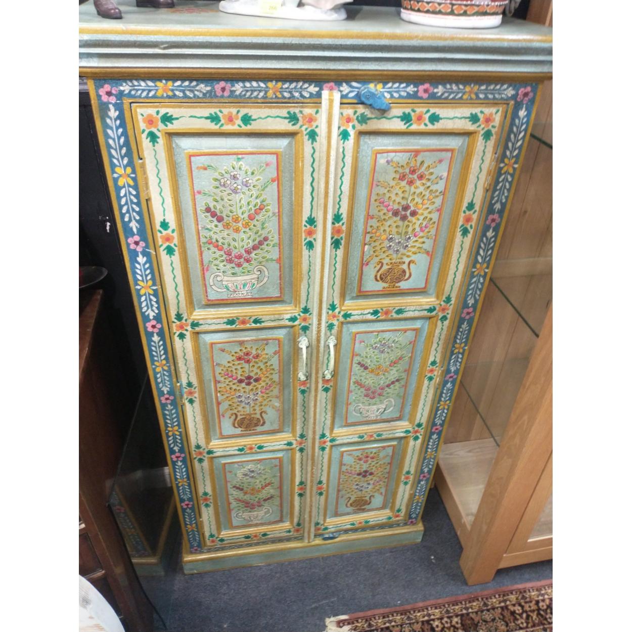 BRAND NEW ITEM UNUSED A vintage ALMIRAH tall cupboard with two doors with 3 bevelled - hand painted in both sides and top and front facia - TRULY A COLOURFUL STATEMENT STORAGE PIECE Dimensions 83cm x 35cm depth x 144cm height approx
