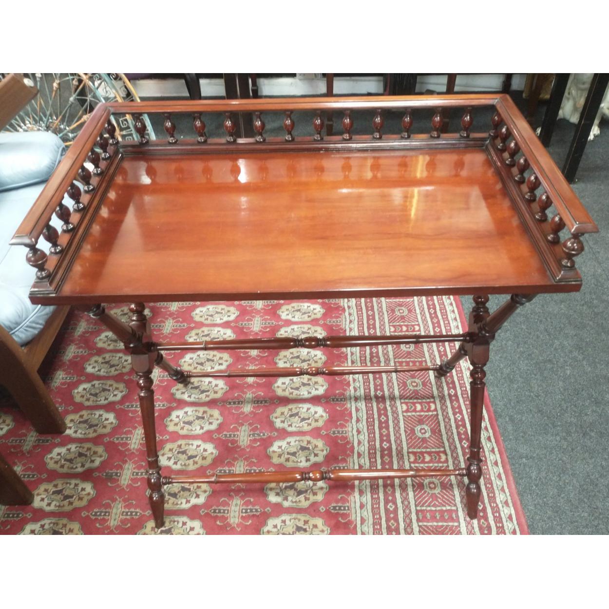 A Georgian style part galleried mahogany hall table. Measuring: 85cm high, 80cm width 48cm deep approx. Displays beautifully, stylish and useable.