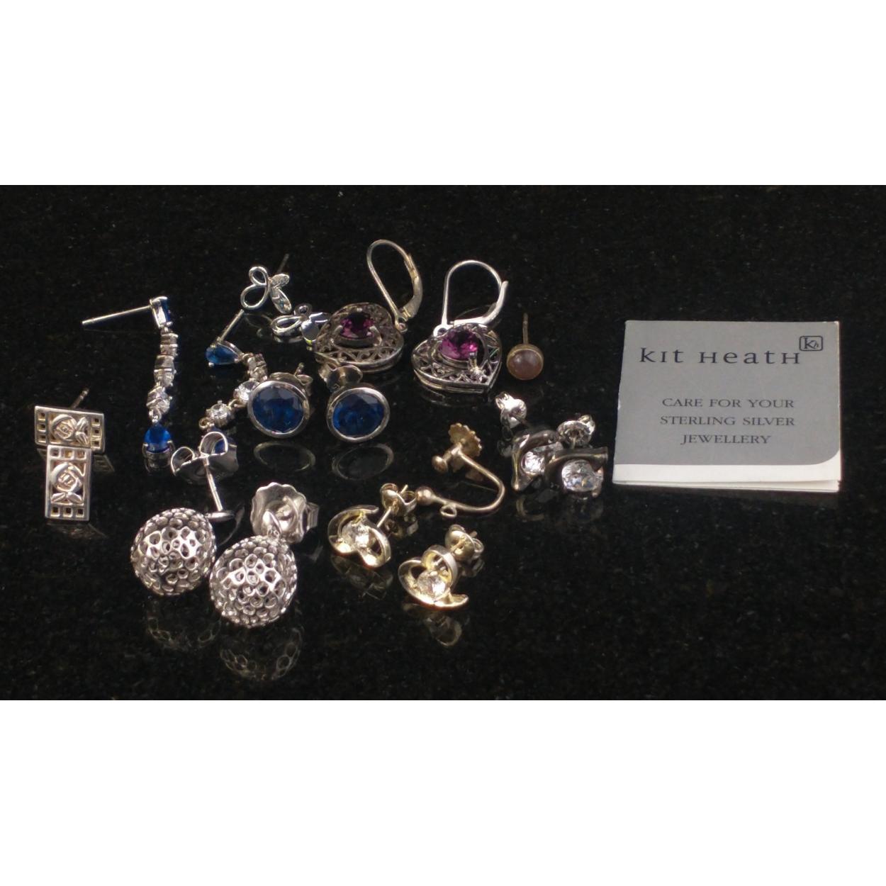 A great collection of 925 stamped earrings, seven complete pairs and others.