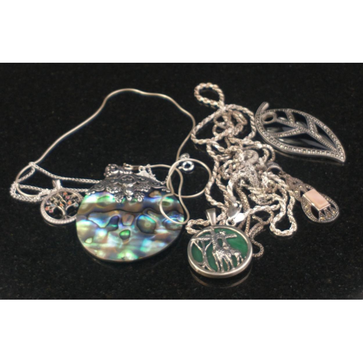 A nice collection of 925 stamped silver jewellery comprising pendants to include an abalone shell etc. Gross weight 58.9g approx