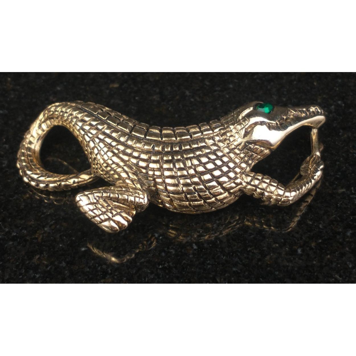 An intriguing base metal lizard pendant, nicely modelled with green stone eye. 55cm, Gross weight approx 12.3g.