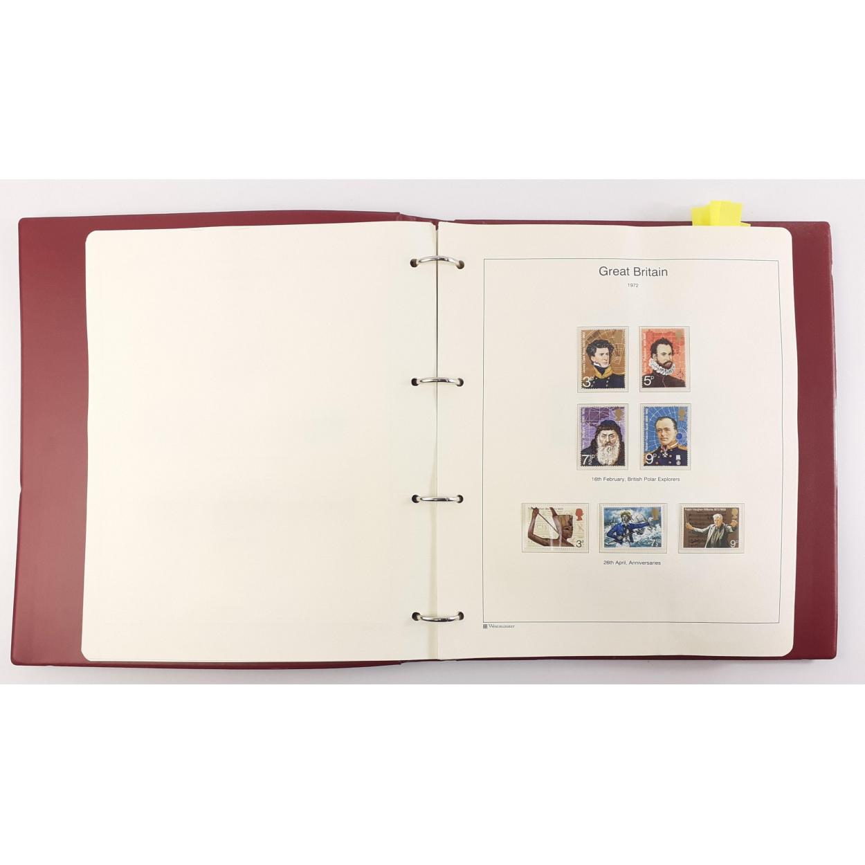 STAMPS. An attractive plush album with a well presented collection of GREAT BRITAIN mint commemorative stamps. From 1971 to 1989