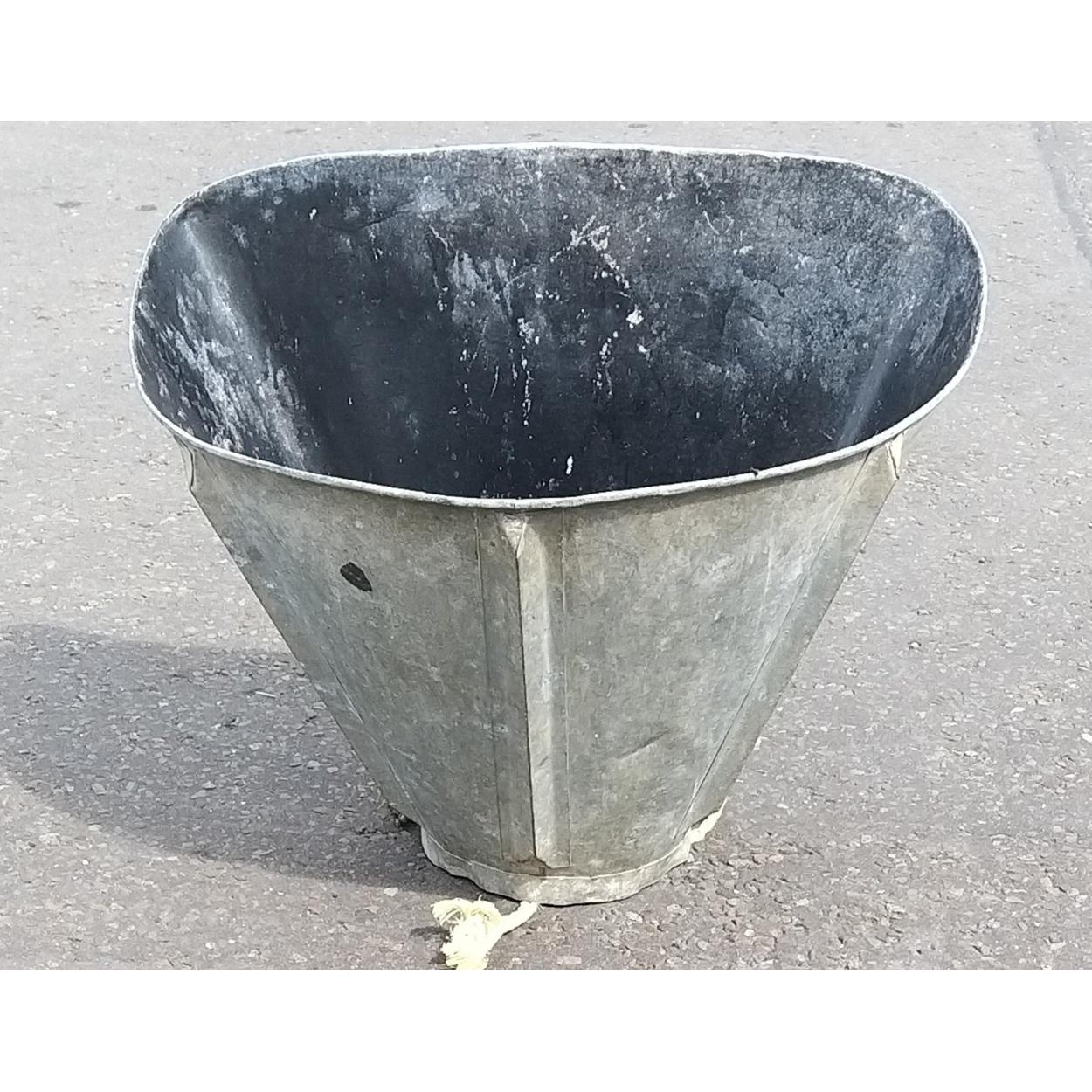 An aluminium hopper bin standing 49cm tall approx and 70cm wide. A nice decorative useable piece.