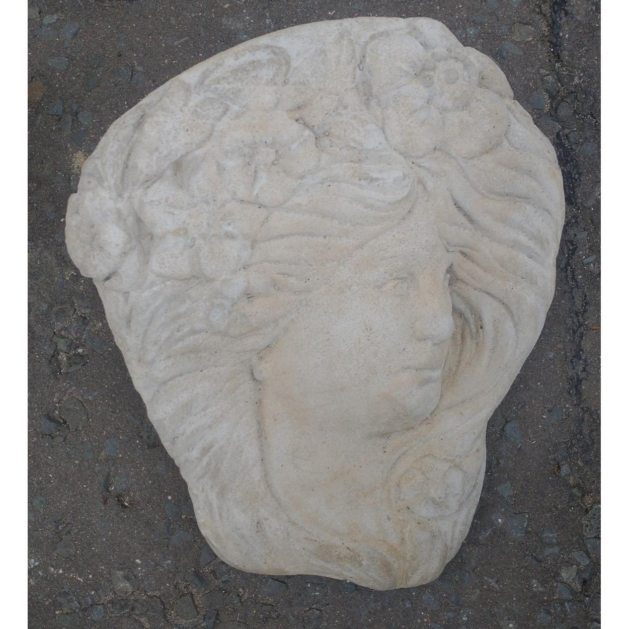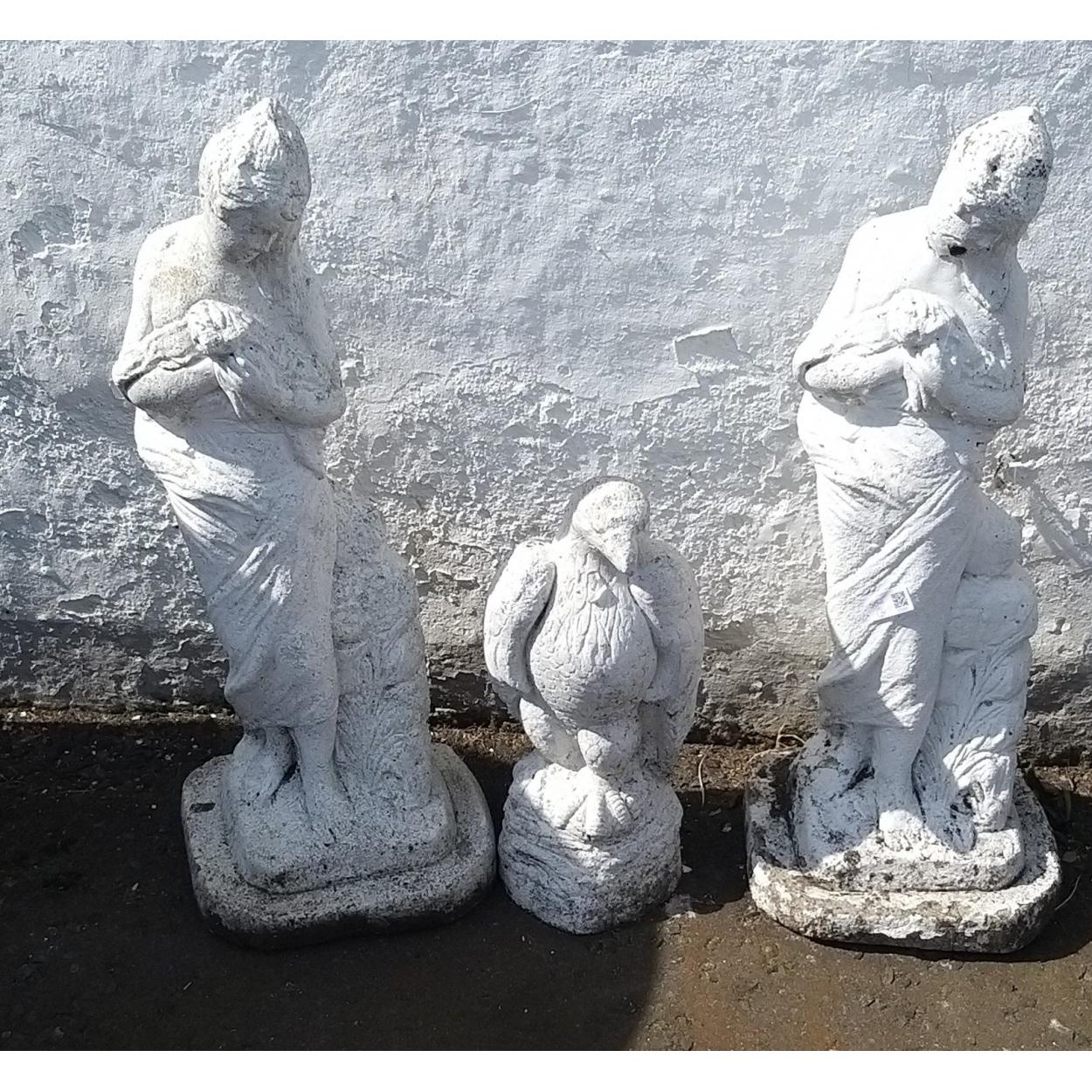 Three reconstituted stoneware garden ornaments. Two female figures and a model of an eagle.