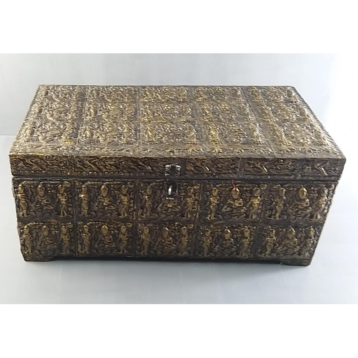 A lovely Far Eastern highly decorated repousse chest with deities. 46cm x 26cm x 20cm approx.
