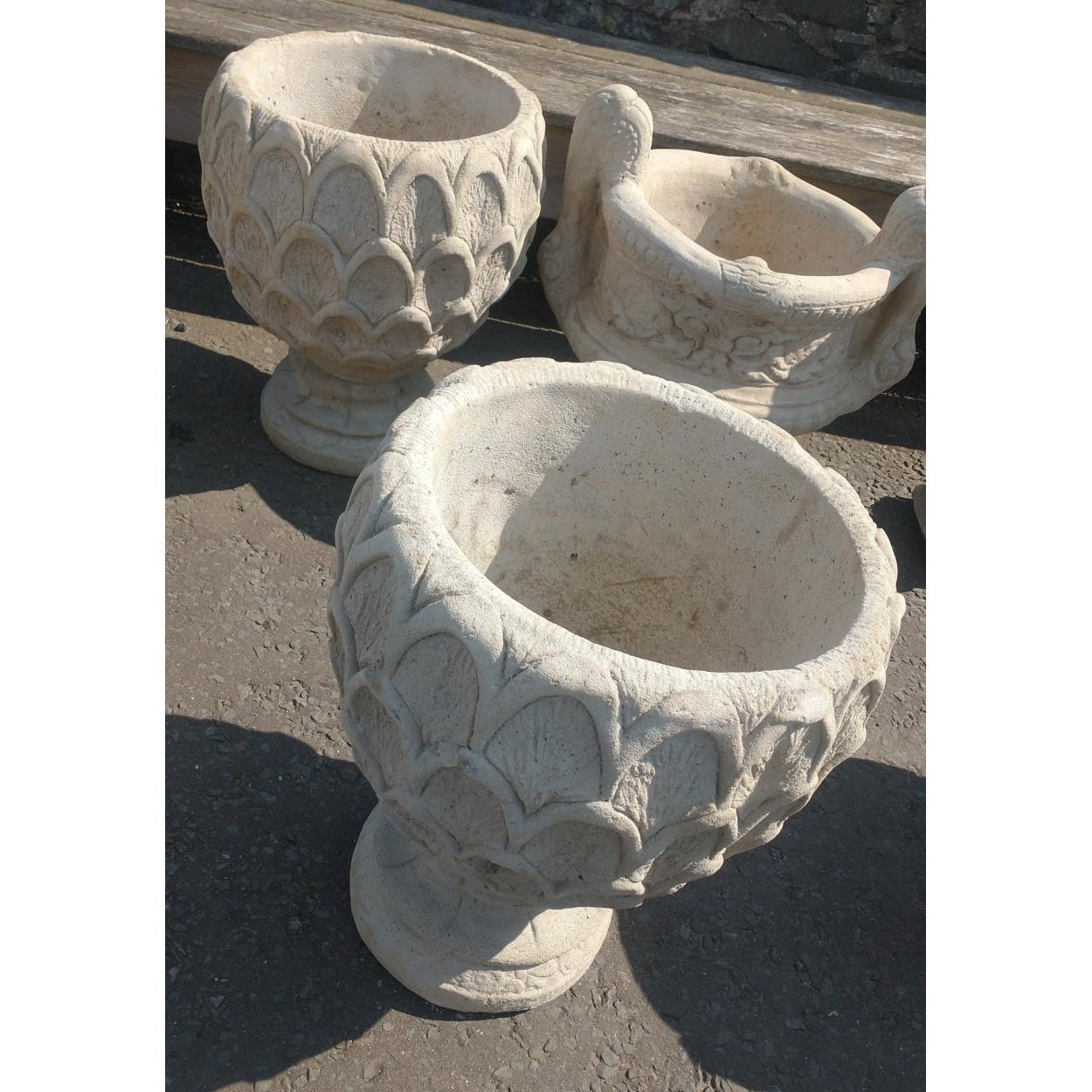 Pair of pineapple style garden planted on plinths. Come in 2 pieces each, H: 50cm W: 40cm