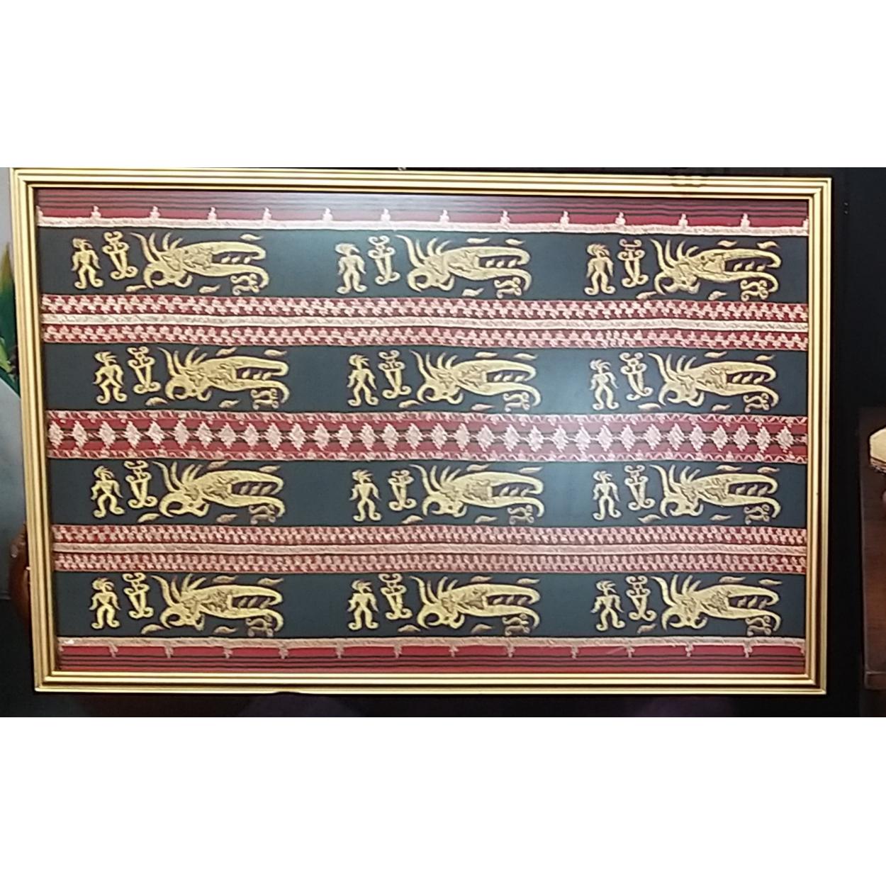 Sumatran woven framed embroidery - dimensions 100cm x 65cm approx