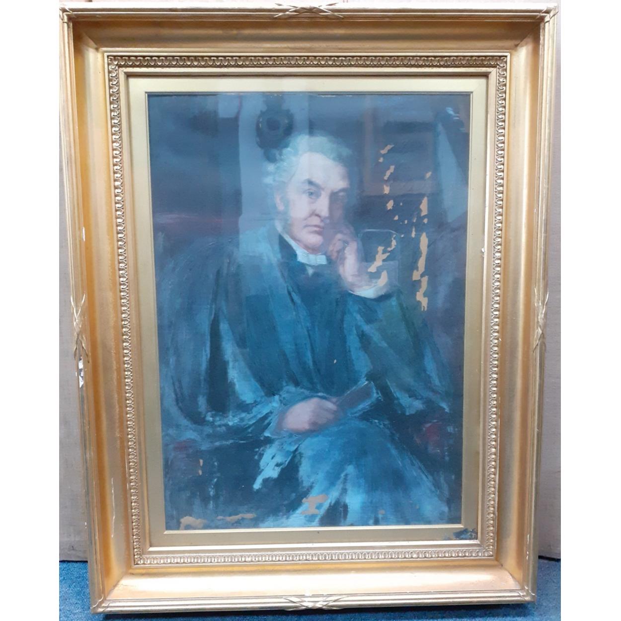 A portrait painting, oil on canvas dated 1899, frame size 75cm x 95cm, original painting size 50cm x 70cm label to rear - picture framers and restorers DOIG, WILSON, & WHEATLEY of George St, Edinburgh, canvas and frame are in need of restoration