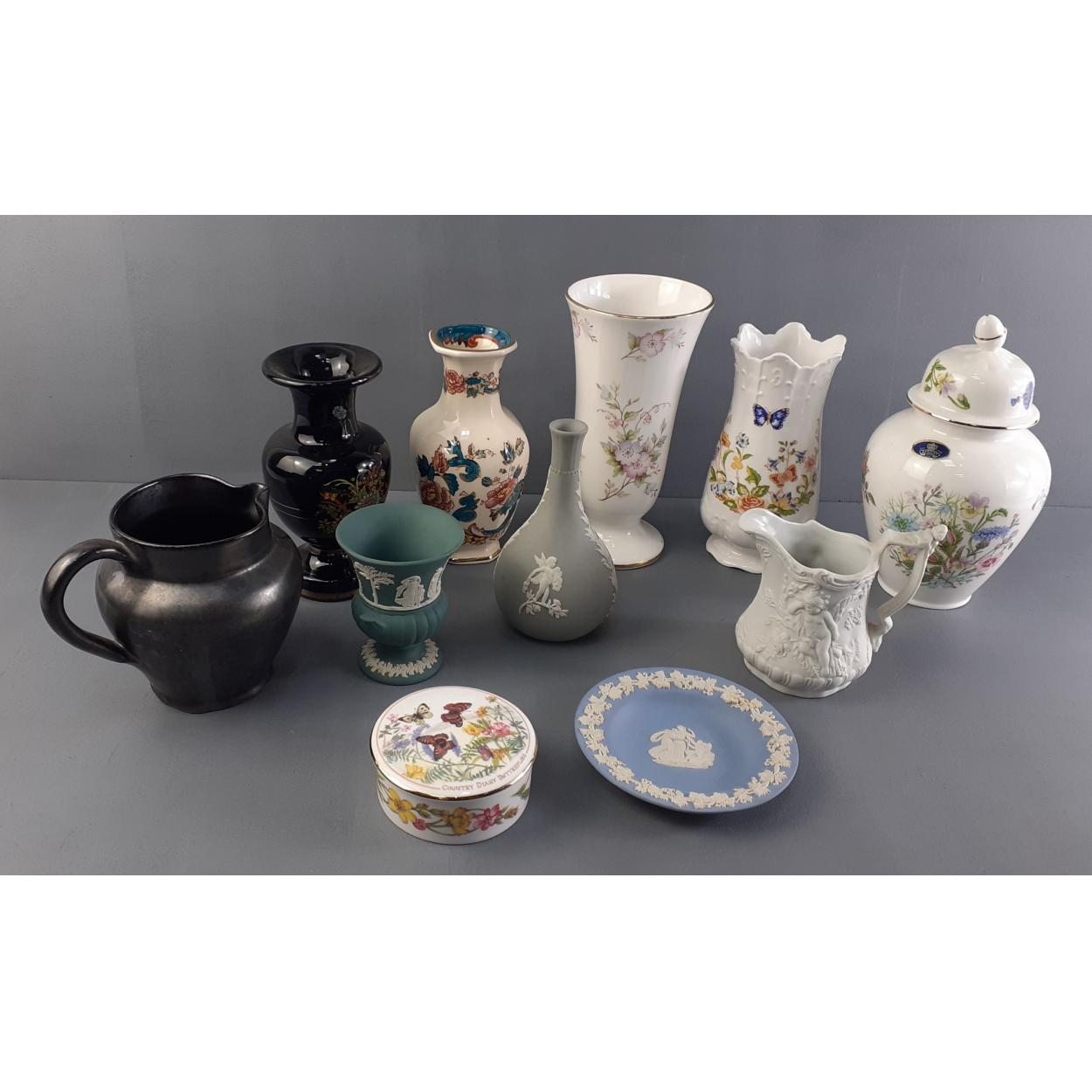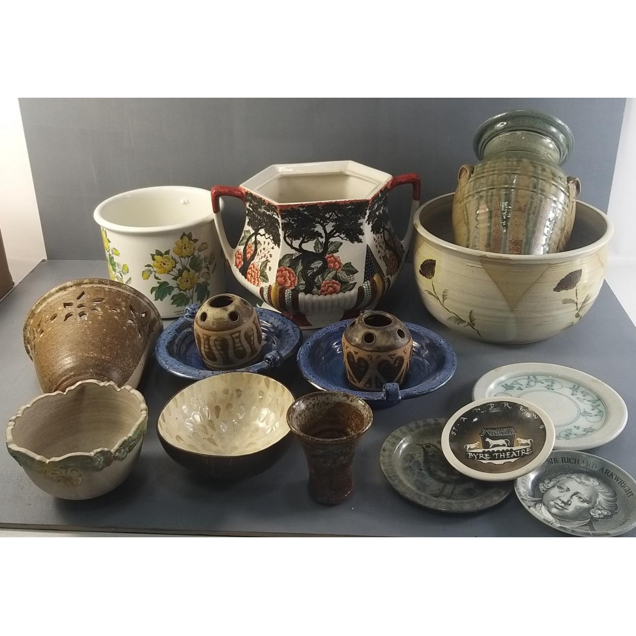 A mixed ceramic and pottery lot comprising attractive art pot and much else.