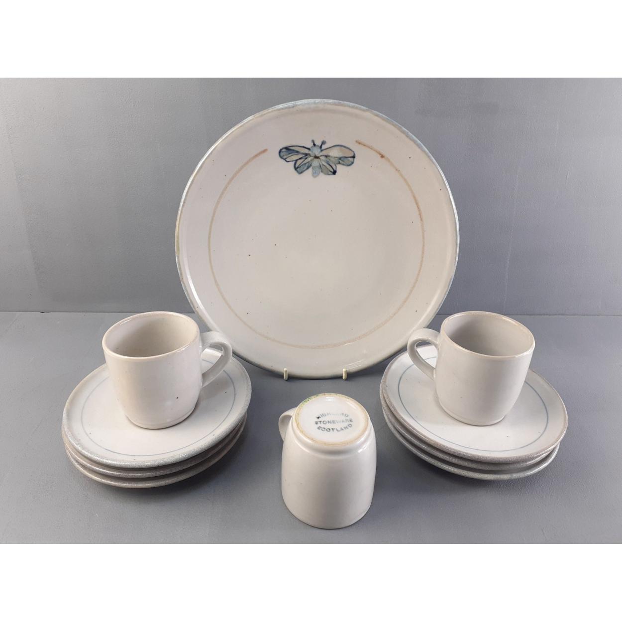 HIGHLAND STONEWARE to include 25cm plate, six saucers, four cups and a sugar bowl. All in good condition.