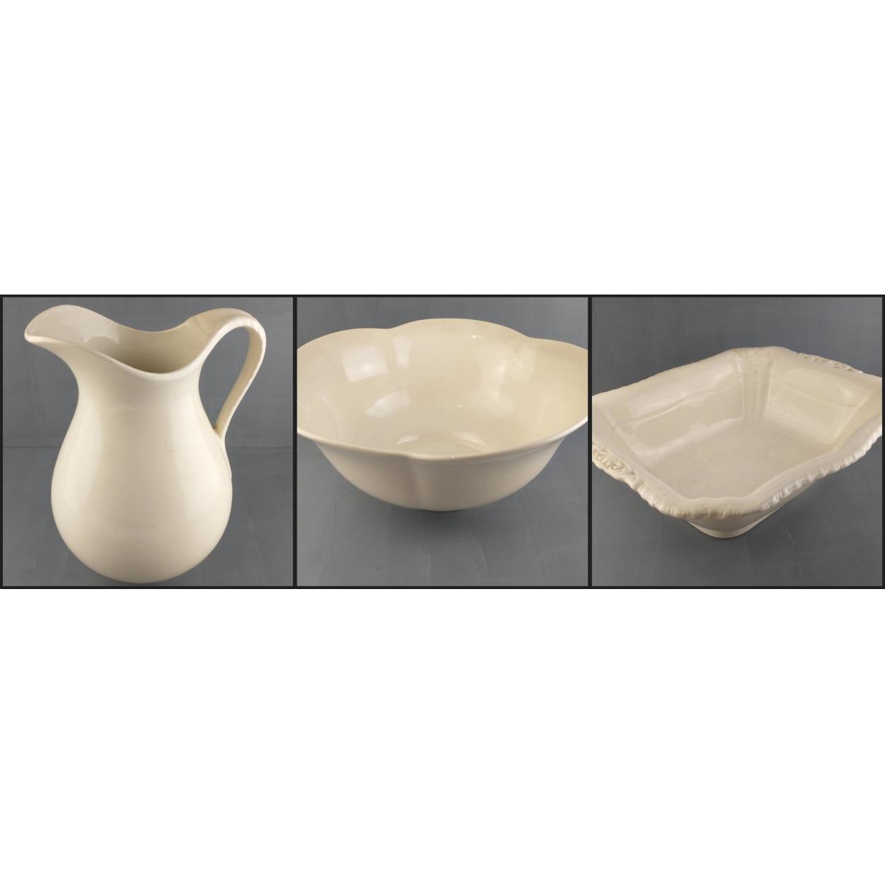 Large Creamware ewer and basin with a large Wedgwood dish (A/F repair).