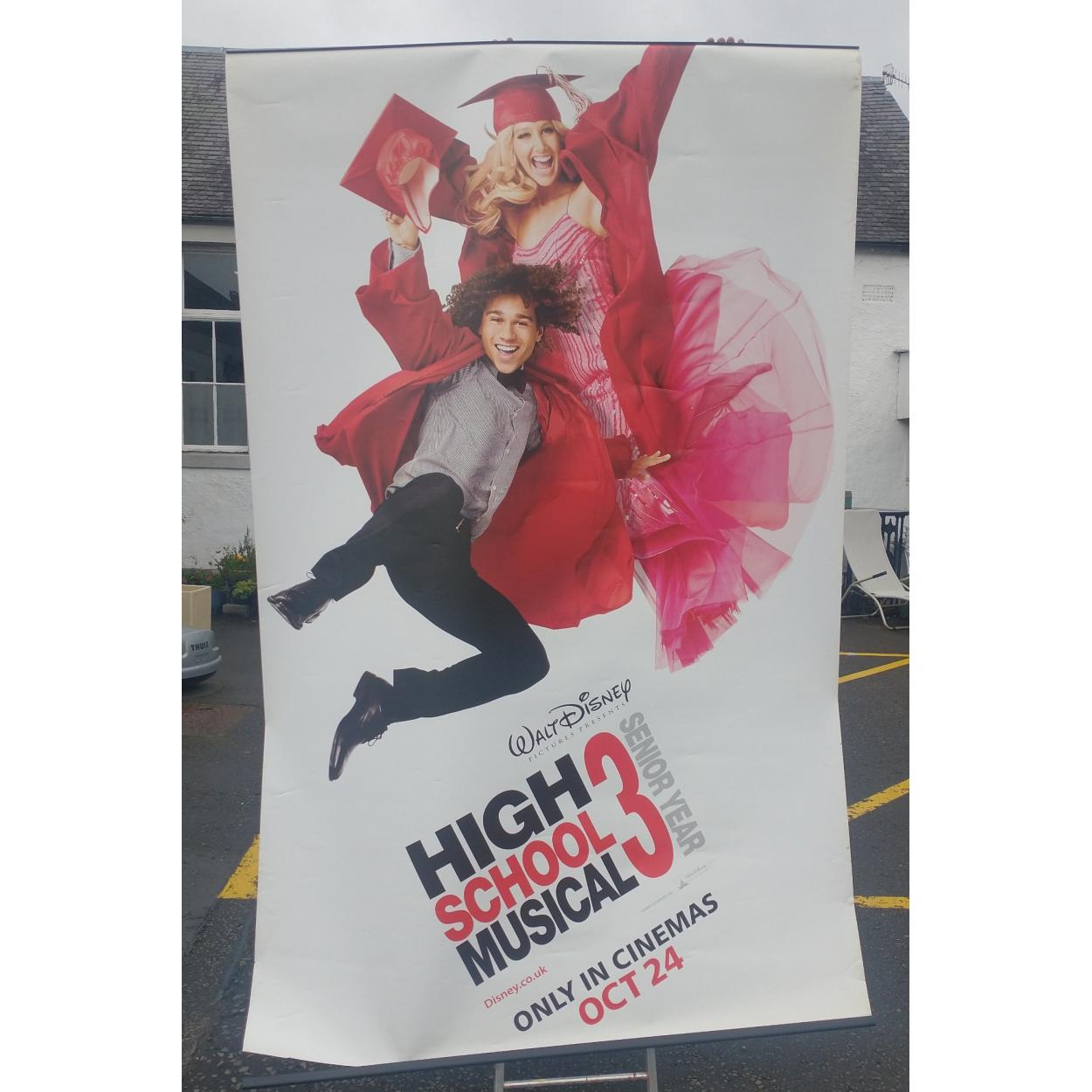Oversize original HIGH SCHOOL MUSICAL 3 theatre cinema poster printed on acrylic and stored rolled. 240cm tall by 140cm wide approx.