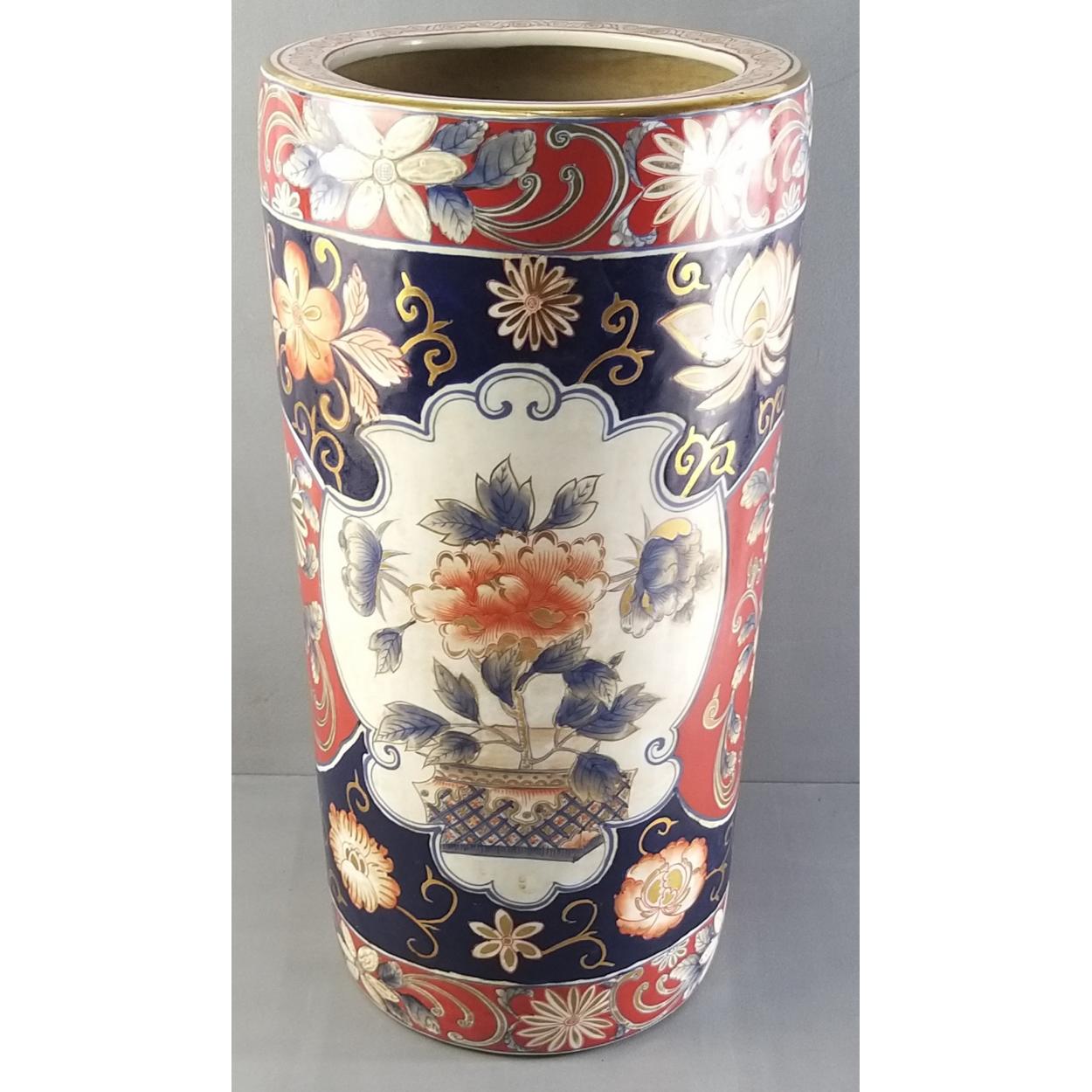 An impressive decorated Oriental ceramic stick stand, 46cm high approx in good condition. Minor star crack noted to base.