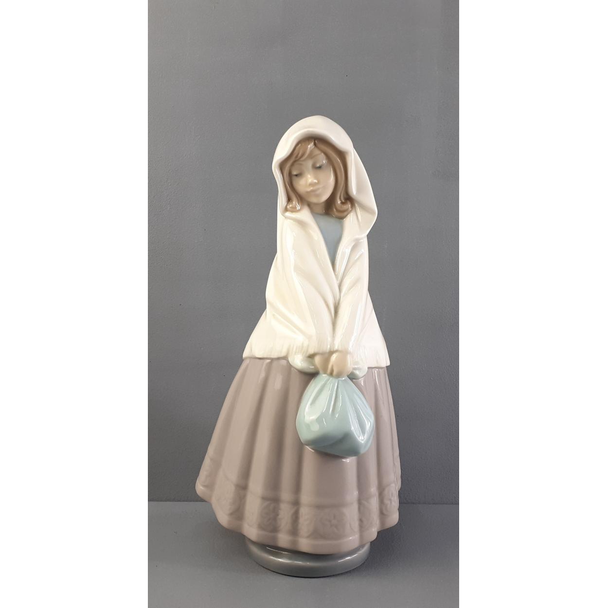 A NAO figure of a peasant girl wearing shawl with bundle. Stands 25cm tall approx. In lovely condition.
