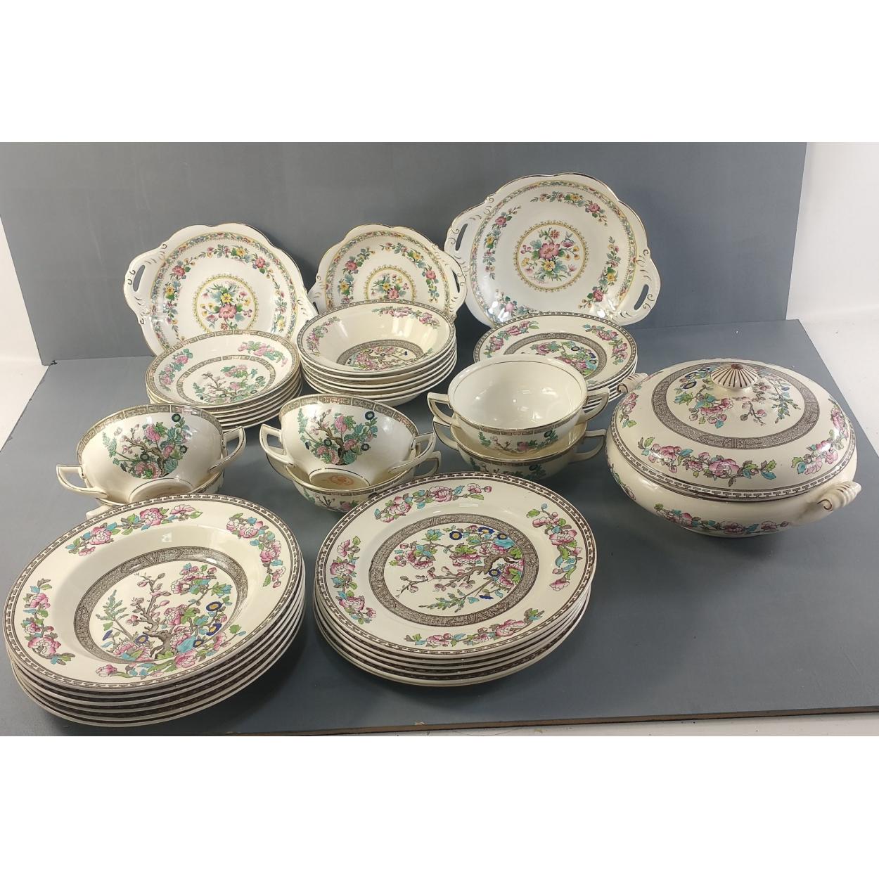 YE OLDE INDIAN TREE assorted dinner service pieces by BRIDGEWOOD. Service consists of lidded tureen, six 23cm plates (one noted with chip), six 23cm bowls, six 17cm plates, 17cm bowls and others.