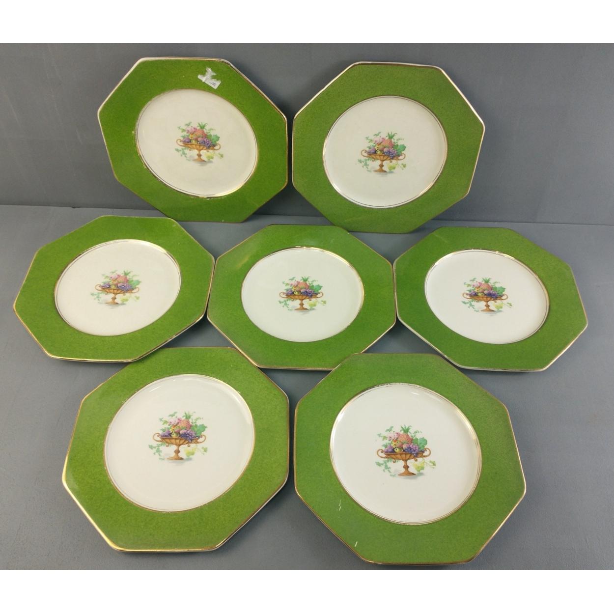 Seven scarcer WEDGWOOD Imperial porcelain octagonal green floral plates. Each 21cm. A few glazing cracks noted.