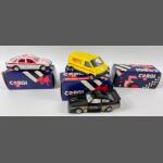 A collection of CORGI DIE-CAST MODELS all in excellent condition to include a FORD SIERRA (Golden Wonder Crisps colours), a RENAULT TRAFIC (Loctite colours), a ZAKSPEED CAPRI (Homefire for Open Fires colours) and an empty box for a Porsche 911 Turbo plus an empty box for a MATCHBOX SUPERFAST Guildsman 1