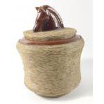 A most unusual ceramic horse jar covered in hair standing 22cm high
