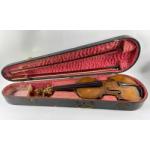 A vintage violin with an internal label reading MATHEW HARDIE, EDINBURGH, 1829, the violin measures 59cm with 2 strings and comes with 2 bows approx 73cm, The violin is housed in a wooden carryng case lined with worn red velvet