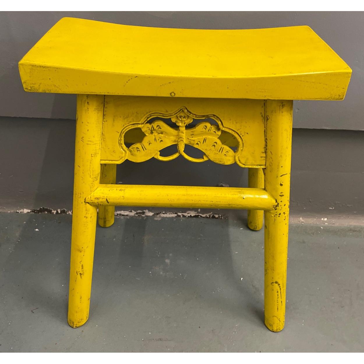 ORIENTAL unusual decorative yellow lacquered based stool - unused item from storage