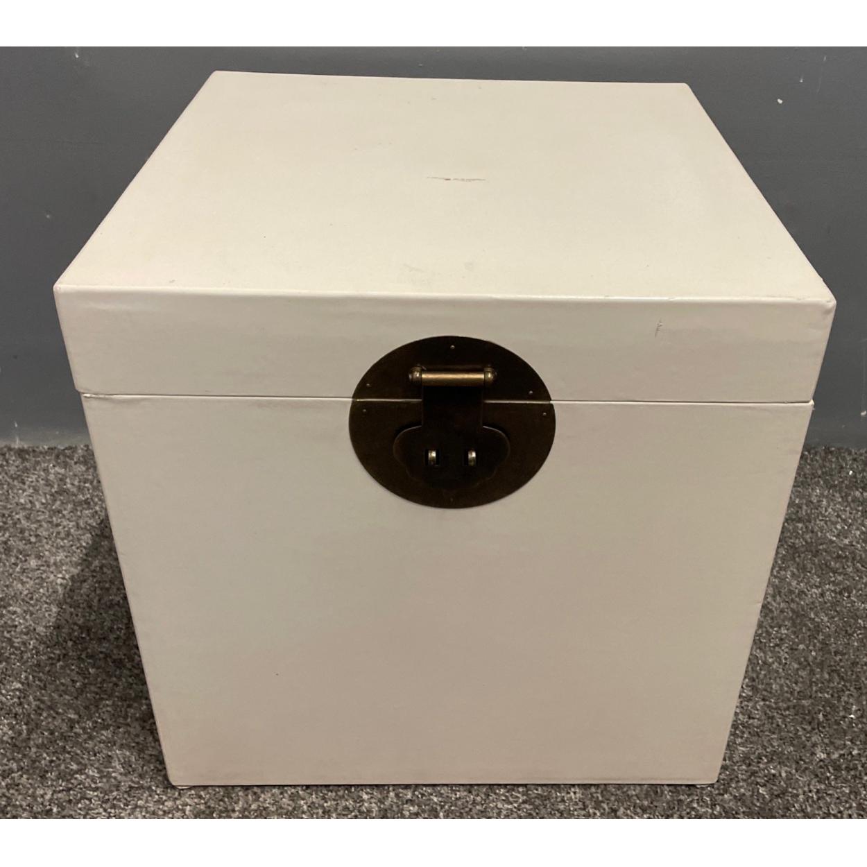 ORIENTAL decorative 'dove-white' lacquered based two wooden boxes set which fit inside each other - unused item in storage
