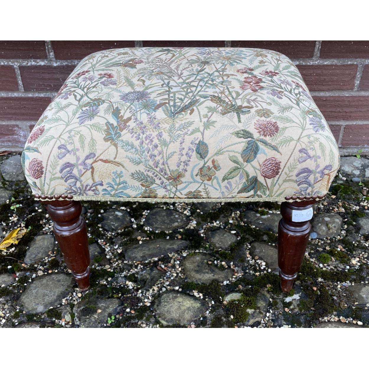 A nice tapestry covered quality footstool - dimensions 47cm square