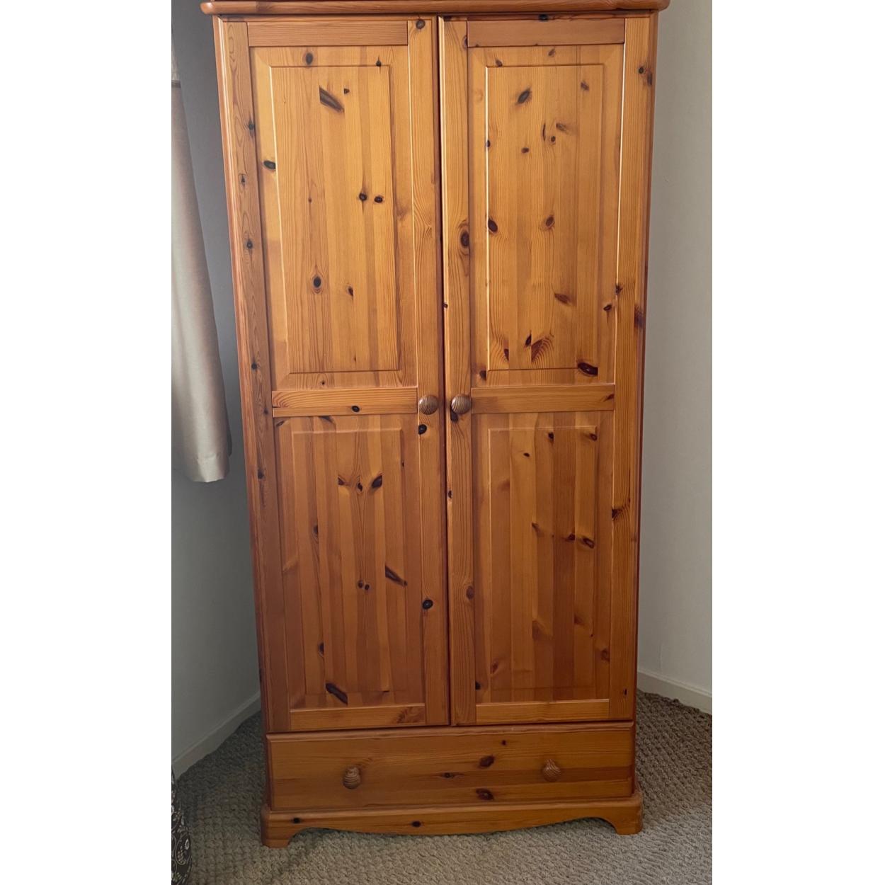A tall MODERN PINE ARMOIRE style wardrobe - dimensions 180cm tall x 50cm depth x width 85cm approx