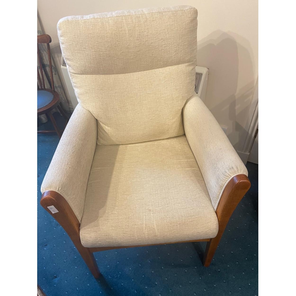 An almost new easy chair in cream fabric