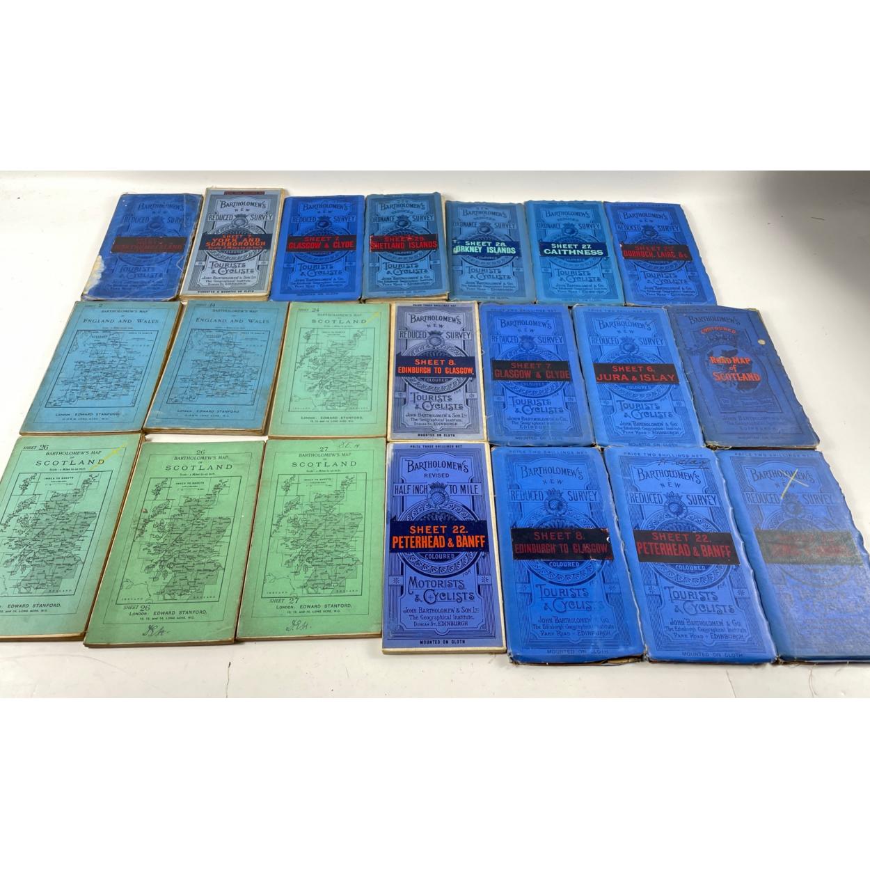 A box full of vintage BARTHOLOMEW'S MAPS including maps of Scotland, England and Wales as well as from the New Reduced Survey for tourists and cyclists