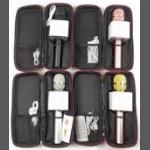 Four wireless microphone and hi-fi speakers in soft quality cases colours - black, silver, gold and yellow