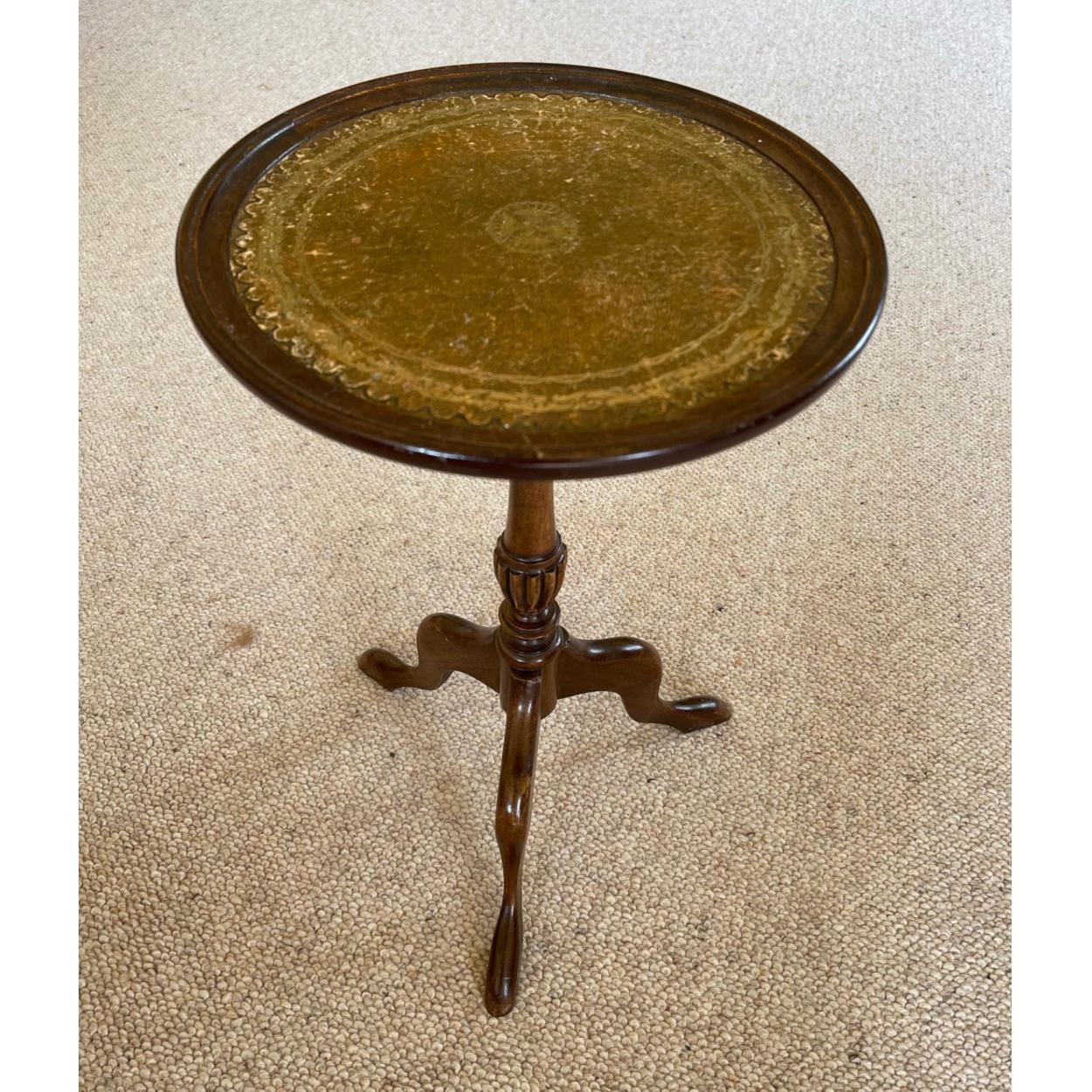 A nice wee WINE side table with faux leather top on tripod leg supports - diameter 1ft approx