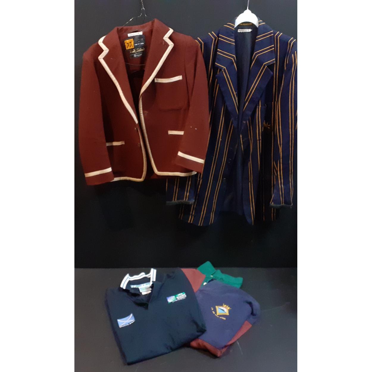 'I SAY JOHNATHON!' Two school blazers in good condition and rugby jumpers etc.