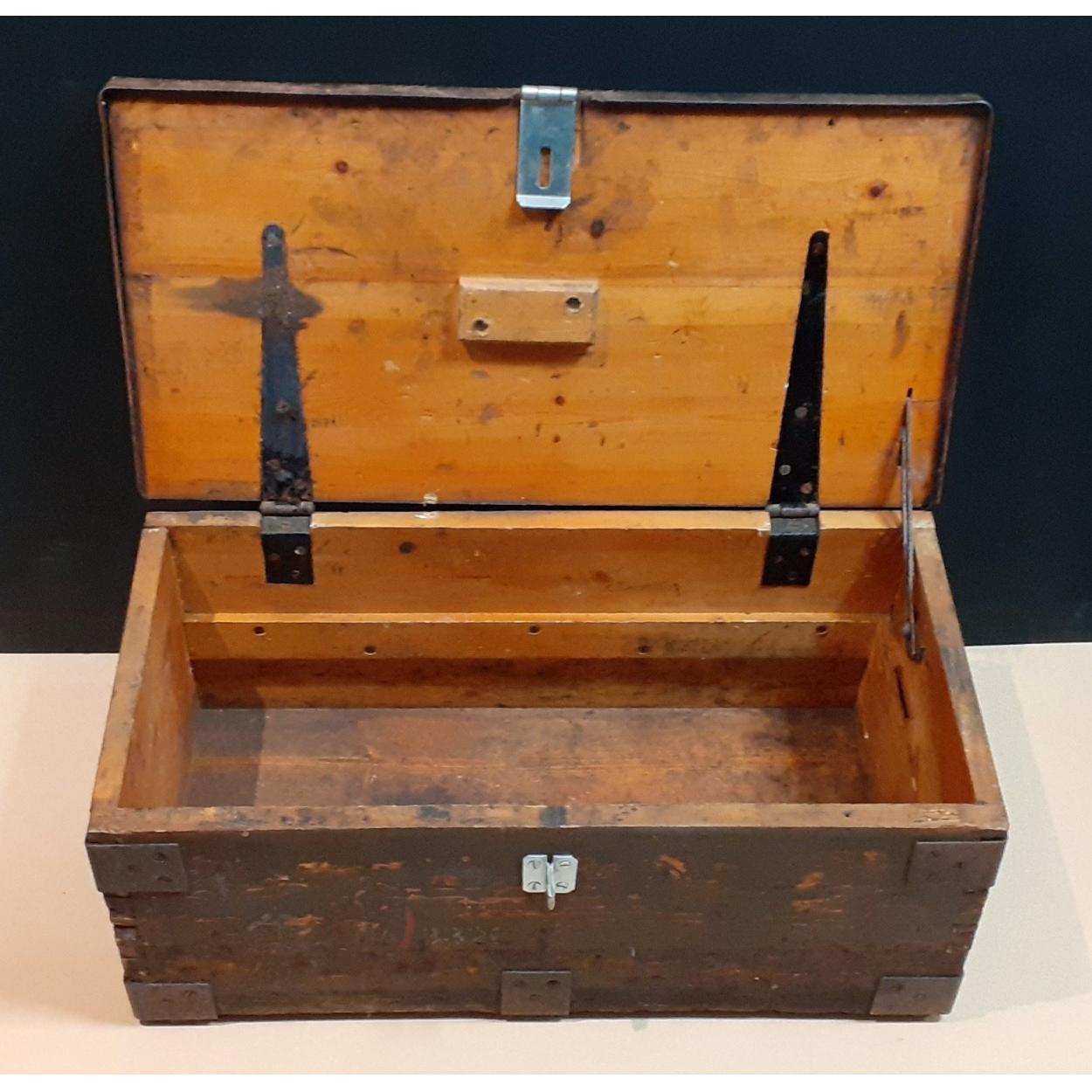 A handy wooden vintage storage box. 62cm x 31cm x 26cm Likely replacement clasp.