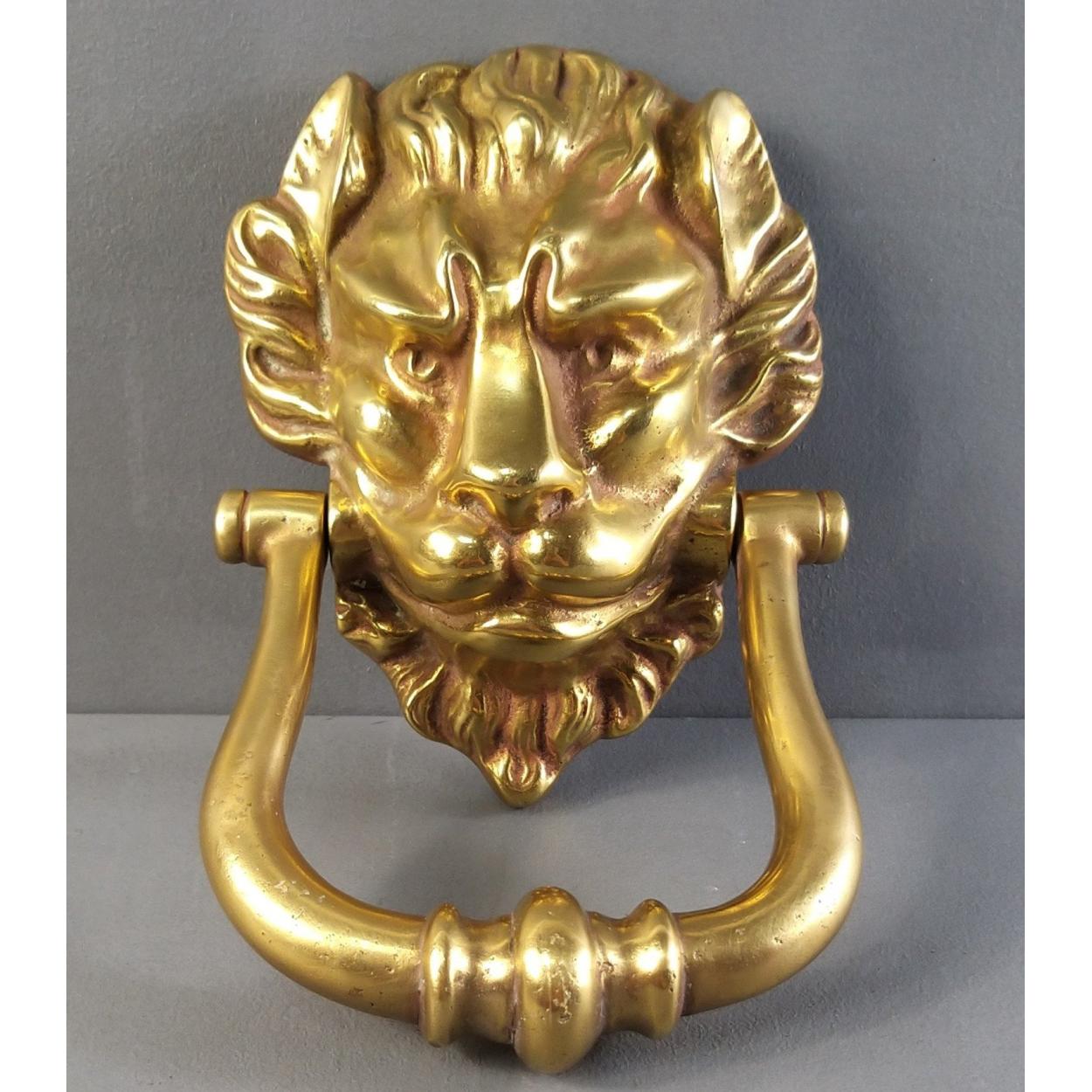 SUBSTANTIAL- well sculpted lions Head brass door knocker. 20cm.